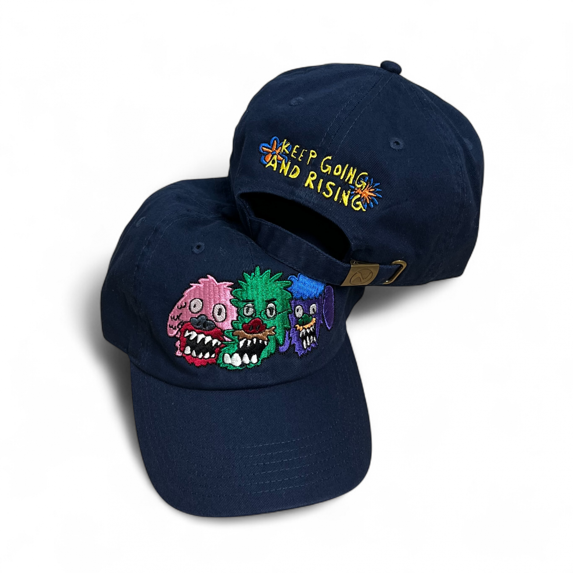 거친 감정을 몬스터로 풀어내는 아티스트 윤성광 @gwaxng 과 사운즈굿의 협업 프로젝트 “KEEP GOING AND RISING” 아트웍이 자수로 표현된 볼캡.